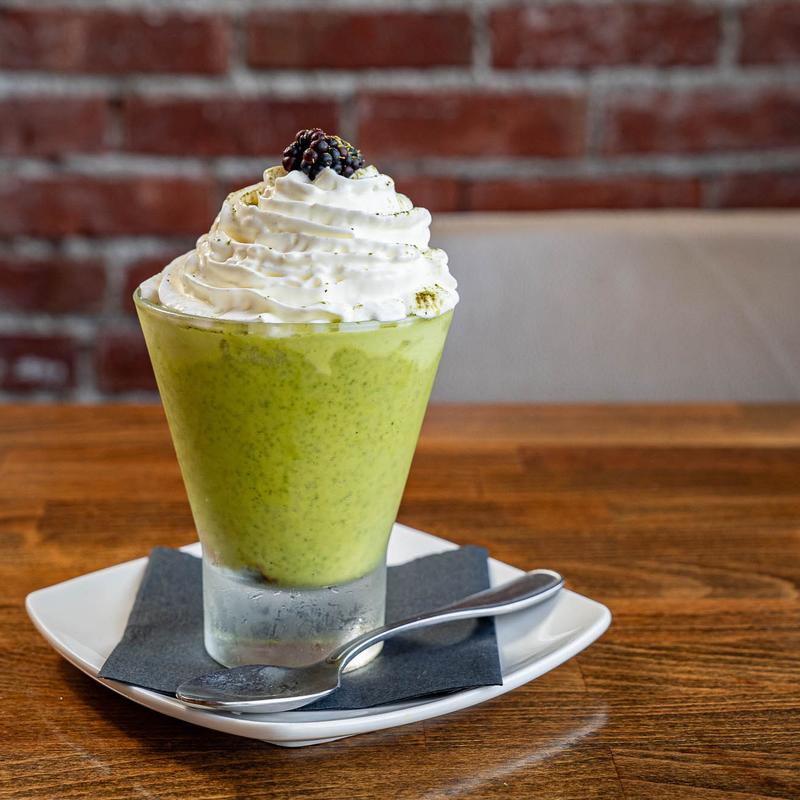 Light and fluffy Green Tea cream and coffee soaked lady finger cookies layered together toped with whipped cream.